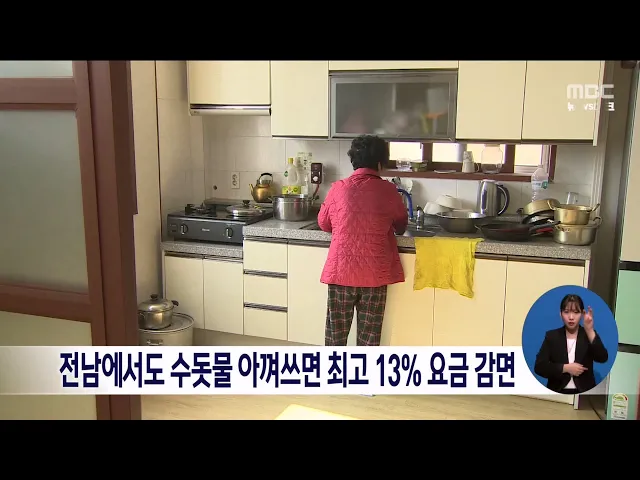 전남에서도 수돗물 아껴쓰면 요금이 감면됩니다. 행정안전부는 최악의 가뭄으로 물 부족 위기에 처한 광주에 이어 전남 12개 시군에서도 수돗물을 아껴쓰면 가구당 최고 13%까지 수도요금을 깎아주기로 했으며 감면기간은 내년 상반기까지 입니다. 정부는 근본적인 가뭄 해소를 위해 저수지 준설과 가뭄 대비 용수 개발, 식...