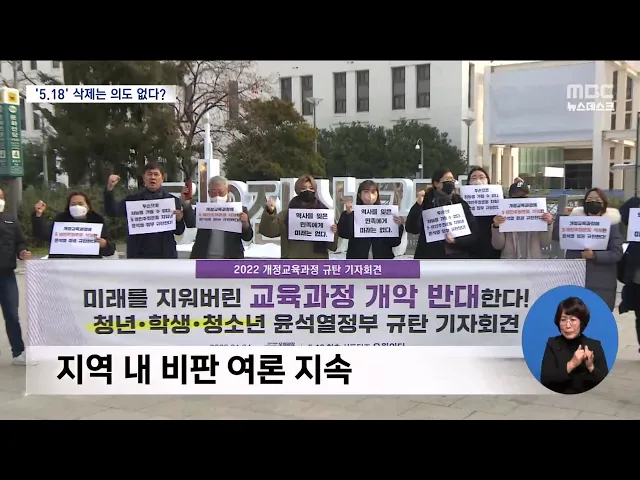 (앵커) 5.18 민주화운동이 교육과정에서 빠졌다는 소식 어제 전해드렸는데요. 교육부가 의도는 없었다고 해명하고 대안을 제시했지만 비판과 논란은 계속되고 있습니다. 이다현 기자입니다. (기자) 논란이 일자 교육부 장관은 5.18 민주화운동이 교과서에 실리도록 하겠다는 입장을 내놨습니다. (현장음) 이주호 / 교육부 ...