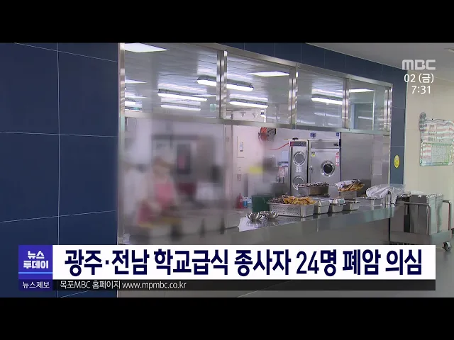 학교급식종사자의 폐암이 질병성 산업재해로 인정된 이후 첫 실시된 건강검진에서 광주전남지역 종사자 24명이 폐암 의심판정을 받았습니다. 국회 강득구 의원과 전국교육공무직본부가 공개한 학교 급식종사가 폐암 검진결과 자료에 따르면 광주는 11명, 전남은 13명이 폐암 의심과, 매우 의심 진단을 받았습니다. 또 산업...