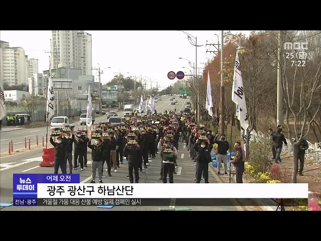 안전운임제 일몰제 폐지를 요구하는 광주*전남 화물연대 조합원들이 내일(24)부터 총파업에 들어갑니다. 민주노총 공공운수 화물연대 광주전남 지부는 내일(24) 0시 부터 광주*전남 조합원 3천 5백여 명이 올해 말 종료를 앞두고 있는 안전운임제 연장을 요구하며 무기한 총파업에 들어간다고 밝혔습니다. 이번 총파업은 지...