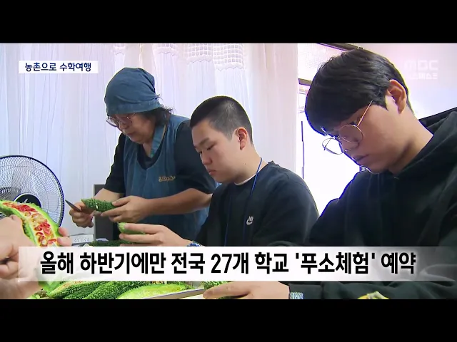 ◀ANC▶ 최근 각급 학교마다 수학여행과 체험학습을 떠나고 있는데요 특히 자연환경이 좋은 농촌에서 하룻밤 머물며 시골의 정을 느끼는 이른바 '푸소 체험'이 인기를 끌고 있습니다. 김진선 기자가 취재했습니다. ◀END▶ ◀VCR▶ 숲속에 자리 잡은 작은 시골집. 귀농한 부부가 오붓하게 사는 집이 평소와 다르게 아침...