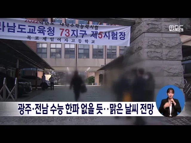 대학수학능력시험이 치러지는 오는 17일 광주전남지역에 수능 한파는 없을 것으로 예보됐습니다. 광주지방기상청은 수능시험일을 전후해 아침 최저기온은 2도에서 10도, 낮 최고기온은 15도에서 19도의 분포로 평년과 날씨가 비슷할 것이라고 전망했습니다. 바다의 물결도 0점5미터에서 2미터로 대체로 잔잔할 것으로 예상...