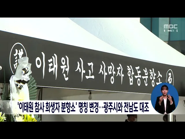 '이태원 참사 희생자 분향소' 명칭 변경과 관련해 전라남도와 광주시가 대조적인 모습을 보이고 있습니다. 강기정 광주시장은 '경찰 초기 대응이 미흡한 점이 분명해졌다'며 어제(2) 합동분향소 현수막을 교체했는데 전라남도는 정부 지침을 그대로 따른 '이태원 사고 사망자 합동분향소' 명칭을 유지하고 있습니다. 전라남...