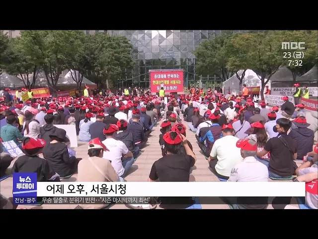 (앵커) 붕괴사고로 입주가 지연된 화정 아이파크 아파트 분양 주민들이 대규모 상경 집회를 벌였습니다. 집회 참석자들은 현대산업개발이 내놓은 주거 대책이 '허울'뿐이라며, 입주 지연배상금 지급 약속을 지키라고 촉구했습니다. 임지은 기자의 보돕니다. (기자) 손팻말을 든 광주 화정 아이파크 분양 주민 수백 명이 서...