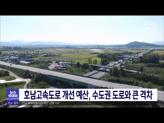 호남고속도로 개선에 투입된 예산이 수도권 도로와 큰 격차를 보이고 있습니다. 최근 15년동안 호남고속도로에 투입된 교통정체 개선 예산은 2천86억 원에 그쳐 수도권 제1순환선 40조 2천억여 원, 경부선 27조 9백억여 원, 중부선 13조1천8백억여 원과 큰 차이를 보였습니다. 그 결과 호남고속도로 중 광주를 관통하는 4개...