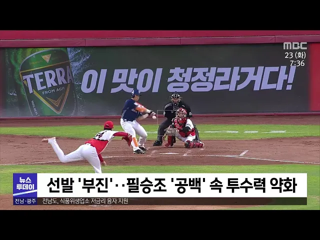 (앵커) 기아 타이거즈가 힘겨운 순위 싸움을 이어가고 있습니다. 투수진의 부진과 부상 공백 속에 5할 승률 유지도 버거워하며 5위 자리마저 위협받고 있습니다. 조현성 기자입니다. (기자) 5승 5패, 기아 타이거즈의 최근 10경기 성적입니다. 시즌 전체로는 53번을 이기고 53번을 져서 역시 딱 5할 승률입니다. 4위 KT와는...