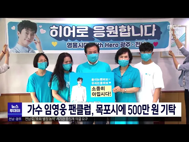 가수 임영웅 씨의 팬클럽 '영웅시대 광주전남'이 목포시에 5백만 원을 기탁했습니다. 팬클럽은 가수 임영웅의 데뷔 6주년을 기념해 모금활동을 실시했으며, 추석 명절에 취약계층 아동들을 위해 써달라며 목포시에 기부금을 전달했습니다.