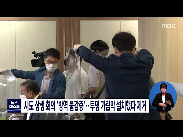 시도상생 회의 '방역 불감증'..투명 가림막 설치했다 제거