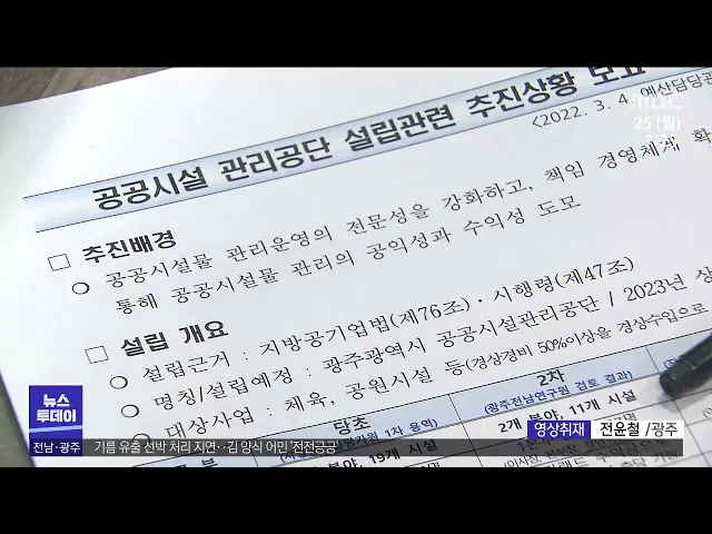 (앵커) 광주시와 전라남도가 산하 공공기관 설립을 추진하고 있습니다. 하지만 윤석열정부가 공공기관 추가 설립에 부정적인 입장이어서 계획대로 될 지는 의문입니다. 보도에 김영창 기잡니다. (기자) 광주시가 광주교통공사 설립을 추진하고 있습니다. 광주시가 지난해 시내버스와 도시철도 1호선 적자에 따라 투입한 재...
