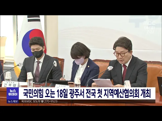 국민의힘이 오는 18일 광주에서 호남권 예산정책협의회를 개최합니다. 윤석열 정부 들어 진행되는 첫 지역 순회 예산정책협의회로 광주시장과 전남지사 등 호남권 광역단체장과 권성동 국민의힘 원내대표 등이 참석할 예정입니다. 9월 예산 국회를 앞두고 광주 전남북 주요 현안사업 등에 대한 논의가 집중적으로 진행될 예...