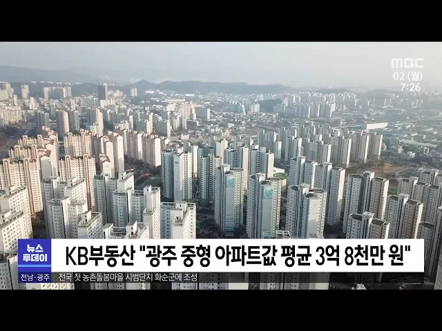 (앵커) 광주의 중형 아파트값이 6개월 연속 내림세를 보인 것으로 나타났습니다. 평균 매매가가 최근 지속적으로 떨어지긴 했지만, 1년 전 가격대를 여전히 크게 웃돌고 있고, 값이 비싼 아파트와 그렇지않은 아파트의 가격 차이도 갈수록 커져가고 있습니다. 조현성 기자가 보도합니다. ----------- KB국민은행의 월간 주...