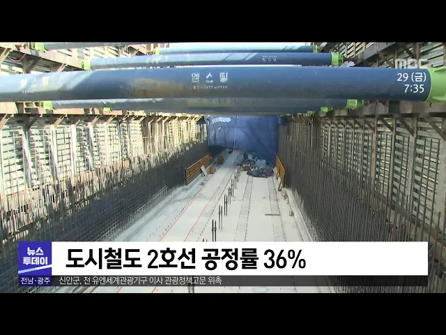(앵커) 광주 도시철도 2호선 1단계 개통이 1년 반 가량 남겨두고 있습니다. 공정률은 30% 중반에 머물고 있고, 전동차 배차 간격은 당초 계획 보다 더 늘어나면서, 정상적인 개통까지 여전히 많은 숙제를 안고 있습니다. 김영창 기자의 보돕니다. (기자) 지난 2019년 착공한 광주 도시철도 2호선. 광주시내 도로 곳곳을 통...