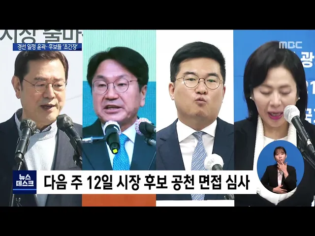 (앵커) 6월 1일 지방선거에 출사표를 낸 후보들이 민주당 공천장을 받기 위해 숨 막히는 경쟁에 들어갔습니다. 다음주부터 선거구별 후보 면접이 진행되는 등 공천 심사를 앞두고 후보자들의 진검승부가 시작됐습니다. 송정근 기자입니다. (기자) 더불어민주당 광주시장 후보에는 모두 4명의 예비 후보가 지원했습니다. 이...