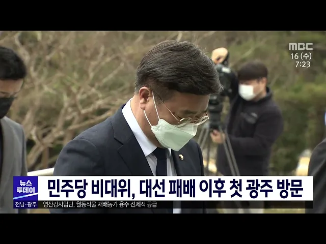 더불어민주당 비상대책위원회가 대선 패배 이후 처음으로 광주를 방문합니다. 민주당 비대위는 오늘(16) 국립 5.18 민주 묘지를 참배한 뒤 광주시당에서 회의를 가질 예정입니다. 또 광주형 일자리의 상징인 광주 글로벌모터스 현장을 방문합니다. 비대위의 이번 광주 방문은 호남의 전폭적인 지지에도 정권 재창출을 하지 ...