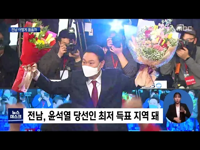 ◀ANC▶ 전남 지역민들은 86%의 표를 더불어민주당 이재명 후보에게 몰아주면서 국민의힘 윤석열 당선인에게 전남은 가장 적은 득표율을 올린 곳이 됐는데요 윤석열 당선인이 밝힌 국민 통합 행보의 가장 큰 숙제가 전남이 됐습니다. 양현승 기자입니다. ◀END▶ ◀VCR▶ 전남은 20대 대선에서 석패한 민주당 이재명 후...