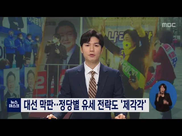 (앵커) 이틀 앞으로 다가온 대선을 앞두고 여야 양당이 막판 스퍼트를 내고 있습니다. 초박빙 승부로 한 표가 아쉬운 상황 속에서 각 정당은 표심 공략을 위한 전략에서 미묘한 차이를 보이고 있습니다. 송정근 기자입니다. (기자) 72시간 비상행동에 들어간 더불어민주당이 광주 전남 곳곳에서 집중 유세전에 들어갔습니다...