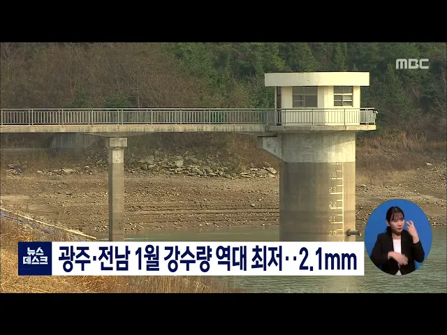 광주전남지역 겨울 가뭄이 우려되고 있습니다. 광주지방기상청은 지난 1월 광주 전남지역의 강수량이 2.1mm로 평년치 29.6mm에 크게 못미치고 전국적인 기상관측이 시작된 1973년 이후 역대 최저치라고 밝혔습니다. 1월 중 비나 눈이 내린 날도 3점3일로 1974년 2점7일 다음으로 가장 적었습니다.