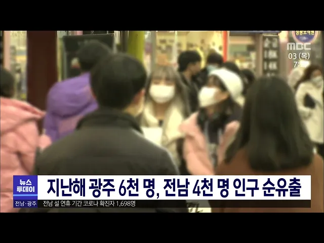 직업과 교육 등의 이유로 타 지역으로 떠나는 시도민들이 여전히 많은 것으로 나타났습니다. 통계청의 2021년도 국내인구이동 통계에 따르면 지난해 광주의 인구는 전년보다 6천명 줄었고 전남은 4천명이 줄었는데 수도권으로만 1만 3천명, 중부권으로는 5천명이 순유출했고 영남권에서 호남권으로는 2천명이 순유입한 것으...