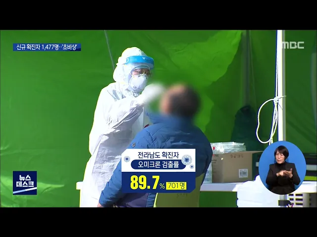 ◀ANC▶ 광주·전남지역의 하루 신규 확진자가 이틀 연속 1000명을 넘어섰습니다. 폭증하는 확진자로 인해 방역 인력 수요가 한계에 다다르고 있습니다. 양정은 기자가 보도합니다. ◀END▶ 코로나19 검사를 받으려는 줄이 인도까지 길게 늘어섰습니다. 오미크론 변이 바이러스가 유행하면서 검사 대상자가 폭증하고 있는 ...