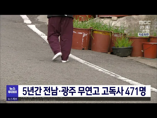 가족 없이 죽음을 맞는 무연고 사망자가 늘고 있습니다. 민주당 김원이 의원실이 보건복지부에서 제출받은 자료를 보면 지난해 고독사로 추정되는 사망자는 3천159명으로 5년 전인 2017년 2천8명에서 57% 증가했습니다. 최근 5년간 전남과 광주에서 고독사로 분류된 무연고 사망자는 471명에 이릅니다.