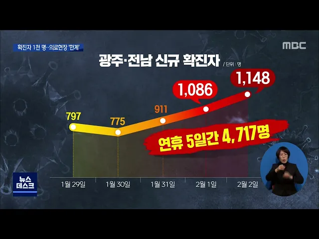 ◀ANC▶ 연휴의 여파로 사흘째 광주전남은 신규확진자가 1천 명을 넘어서고 있습니다. 지난해 보다 10배이상 빠른 확산세를 보이고 있어 각종 방역대책에도 불구하고 확산세를 차단할 수 있는지 걱정입니다. 양정은기자가 보도합니다. ◀END▶ 4일 자정 기준, 광주전남의 코로나19 확진자는 1477명, 사흘째 매일 확진자가...