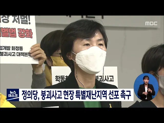정의당, 붕괴사고 현장 특별재난지역 선포 촉구