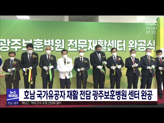 광주를 비롯한 호남 지역 국가유공자와 유가족의 재활을 전담할 광주보훈병원 재활센터가 완공됐습니다. 국가보훈처는 광주 광산구에서 보훈병원 재활센터 완공식을 갖고 호남 지역 국가유공자들에게 전문적이고 체계적인 재활서비스 제공을 약속했습니다. 의료진과 직원 80여 명과 114개 병상을 갖춘 재활센터는 내년부터 ...