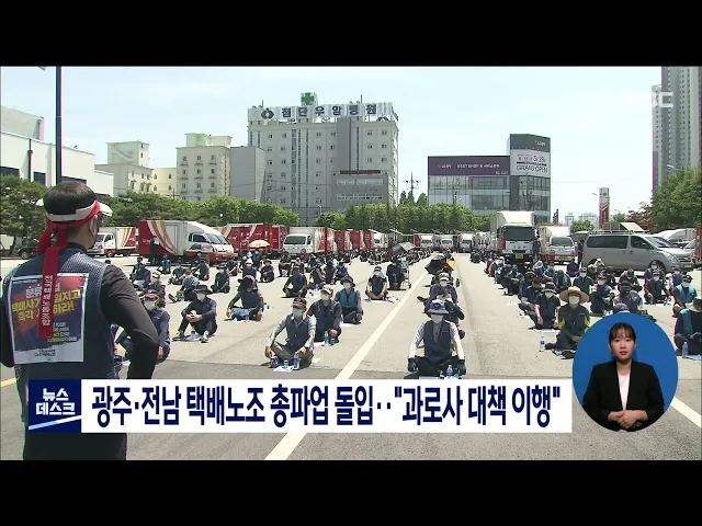 전국택배노조가 총파업에 들어감에 따라 광주*전남 택배노조도 파업에 들어갔습니다. 전국택배노조 광주*전남지부는 과로사 방지 조치를 위해 분류작업에 대한 대책을 낸 사회적 합의가 이행되지 않고 있다고 밝혔습니다. 이번 파업은 전국택배노조 5천여 명 조합원의 90%가 넘는 동의로 이뤄졌고, 광주*전남에서는 2백여...