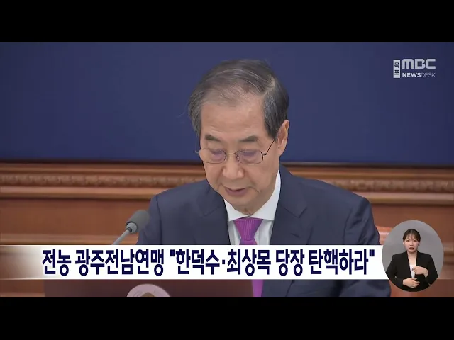 최상목 경제부총리가 한미 통상 협의 등에 참석하기 위해 미국행에 오른 가운데 전국농민회 광주*전남연맹이예고된 매국 졸속협상을 멈추기 위한 "내란 종사자 즉각 탄핵"을 촉구했습니다.이들은 오늘(22) 성명서에서 "계엄 아수라판에 영혼을 저당 잡힌 채 제 이름 석 자로 제대로 쓰지 못하는한덕수와 최상목에게 나라의 ...