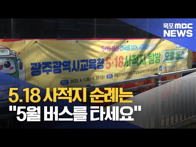 ◀ 앵 커 ▶국립 5.18 민주묘지를 비롯해 5.18 사적지를 손쉽게 순례할 수 있는 5월 버스가 운행되기 시작했습니다.시행 첫해인 올해는 광주 지역 학생들만 이용할 수 있는데,교육당국은 5.18의 전국화와 세계화를 위해 전국의 학생들로 범위를 넓혀나갈 계획입니다.이재원 기잡니다.◀ 리포트 ▶이른 아침 광주의 한 초등학교....