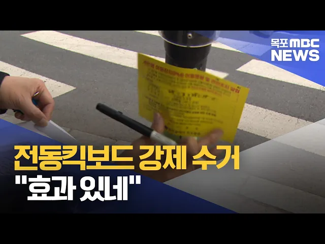 ◀ 앵 커 ▶시.군 마다 길거리에불법 주차된 전동킥보드 처리에 애를 먹고 있습니다.광주시의 경우 불법 주차된 전동킥보드에 대한 단속을강화하고 있는데요도로 환경 개선은 물론 사고도 줄어들고 있어 시민들은 대체로 반기고 있습니다. 보도에 김영창 기자입니다.◀ 리포트 ▶횡단보도를 막고 있는 전동킥보드 2대.신고를 받...
