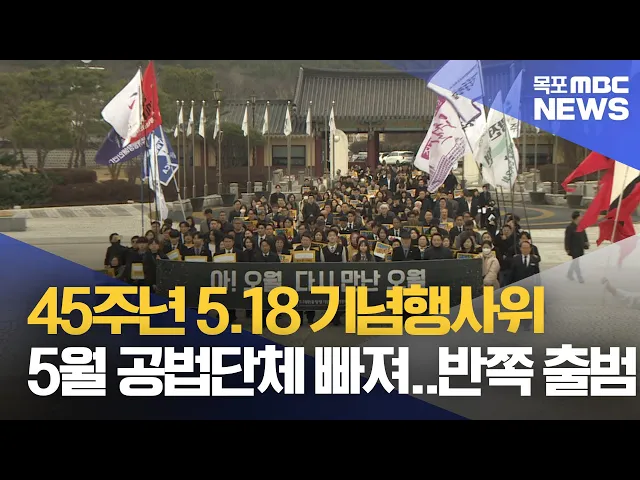 ◀ 앵 커 ▶5.18민주화운동 기념일이이제 두 달여 앞으로 다가왔습니다.올해 45주년을 맞는 만큼기념행사위원회는 각별히 신경 써서 기념식을 준비하고 있는데요.하지만 5.18 공법 단체들이 행사위원회에서 빠져있어,반쪽짜리 출범이라는 오명을 피하기 어렵게 됐습니다.김초롱 기자의 보도입니다. ◀ 리포트 ▶거대한 태극기와...