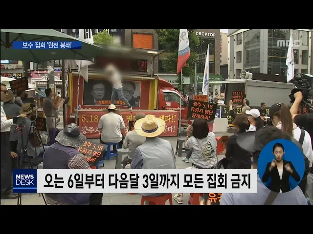 (앵커) 5.18 40주년을 맞아 보수단체가 대규모 집회를 예고하자, 광주시가 초강경 대응에 나섰습니다. 코로나19 확산 방지를 근거로 집회를 금지하는 행정명령을 발동했습니다. 이계상 기자.. (기자) 자유연대 등 보수단체들이 5.18민주화운동 40주년을 앞두고 대규모 집회 신고를 강행하기로 했습니다. 오는 16일과 17일 ...
