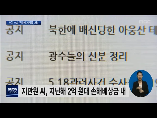 (앵커) 5.18 당시 광주시민들을 북한에서 온 특수군이라며 터무니 없는 주장을 했던 지만원씨가 자신의 게시물을 누리집에서 삭제했습니다. 지씨는 손해배상금을 물게 될까 두려워서일 뿐 반성은 하지 않는다고 말했습니다. 이다현 기자입니다. (기자) 5.18 당시 광주 시민들의 사진을 두고 북한 특수군이라고 지목한 게시...