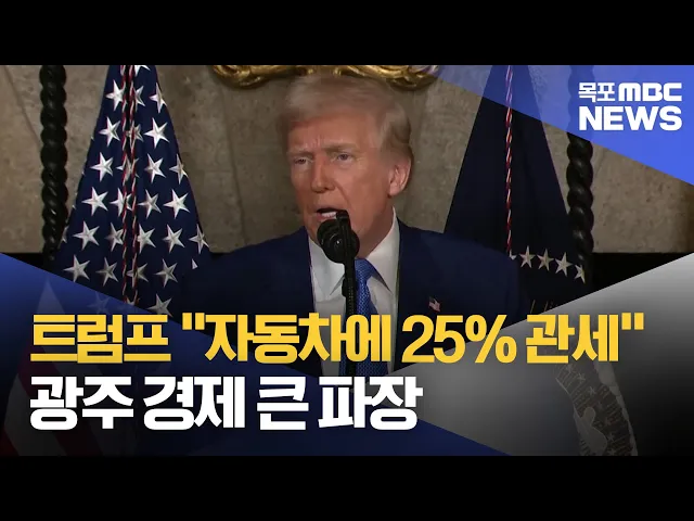 ◀ 앵 커 ▶미국 트럼프 대통령이수입 자동차에 25% 정도의 관세를 부과하겠다고 예고했습니다.이 예고가 현실화하면 대미 자동차 수출 비중이 높은광주로서는 큰 타격을 받을 수밖에 없습니다.윤근수 기자◀ 리포트 ▶자동차 관세를 부과하는 시기는4월 2일로 이미 예고했었습니다.관세를 얼마나 매길지가초미의 관심이었는데...