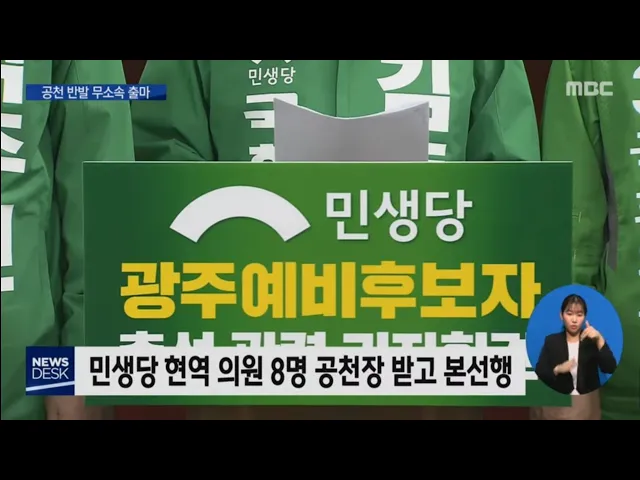 (앵커) 민생당 후보 공천이 현역 의원들의 잔치에 불과했다는 비판이 거세지고 있습니다. 공천 결과가 하룻만에 뒤바뀐 광주 동남을 지역에서는 김성환 전 동구청장이 당의 일방적인 결정에 반발해 무소속 출마를 선언했습니다. 이계상 기자.. (기자) 민생당 공천관리위원회와 최고위원회가 광주 동남을 후보로 박주선 현 ...
