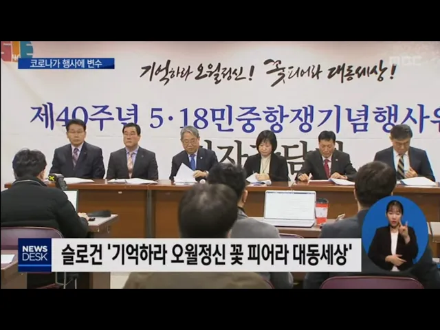 ◀ANC▶ 두 달 앞으로 다가온 5.18민주화운동 40주년 기념행사는 전국화, 세계화에 방점을 두고 준비되고 있습니다. 하지만 코로나19가 전세계로 확산하면서 행사를 축소하거나 연기할 가능성이 커지고 있습니다. 송정근 기자입니다. ◀END▶ 올해로 불혹을 맞은 5.18 기념행사의 슬로건은 '기억하라 오월정신! 꽃피어라 ...