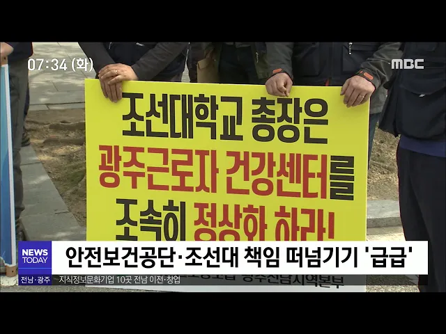 (앵커) 광주 근로자건강센터에서 일하는 직원들이 센터를 떠나기로 했습니다. 고용 불안과 열악한 처우 때문에 더 이상 일을 못하겠다는 겁니다. 이 분들이 없으면 소규모 사업장 노동자들의 건강을 챙기는 일에도 차질이 예상되는데 관련 기관들은 서로 책임을 떠넘기고 있습니다. 남궁 욱 기자의 보도입니다. (리포트) 백...