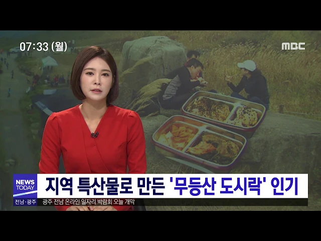 (앵커) 무등산 도시락이라고 들어보셨나요? 지역 특산물로 만든 친환경 도시락인데요. 등산객들 사이에서 입소문이 퍼지면서 인기를 끌고 있습니다. 송정근 기자입니다. (기자) 광주 도심이 한 눈에 내려다 보이는 무등산 국립공원 장불재. 등산객들이 가을의 정취를 즐기며 삼삼오오 모여 점심을 먹습니다. 그런데 메뉴가 ...