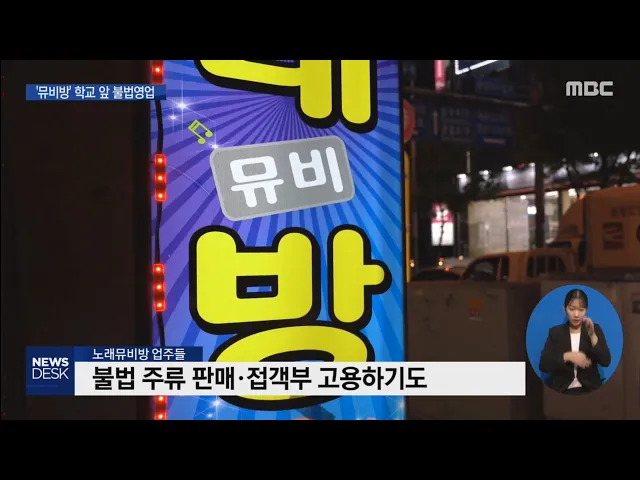 (앵커) '노래뮤비방'이라고 들어보셨습니까? 노래 부르는 모습을 영상으로 담아 가질 수 있도록 한 건데 실상은 유흥주점과 다를 것 없습니다. 일반 노래연습장과 달리 규제도 받지 않아 학교 주변에 우후죽순 들어서 있습니다. 우종훈 기자가 취재했습니다. (기자) 폐쇄된 노래연습장 기기에서 반주가 나오고 테이블에는 ...