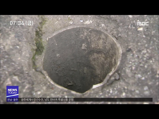 (앵커) 광주시내 도로에 사람들 발이 빠질 만한 크기의 구멍이 곳곳에 나 있어 시민들의 안전을 위협하고 있습니다. 자동차에 의해 훼손된 포트홀인가 싶지만 자치단체나 상인들이 빗물 잘 빠지라고 일부러 뚫어놓은 배수구멍이라고 합니다. 막상 사고가 나면 누구에게 책임을 물어야 할 지가 애매합니다. 남궁 욱 기자가 ...