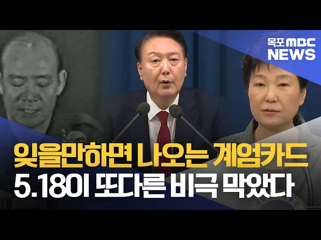 (앵커)윤석열 정부들어 잊을만하면 언급되던 계엄카드가 실제로 나오면서 충격을 더했지만더 큰 불행은 발생하지 않습니다.5.18 광주학살의 비극과 진상규명 노력들이역할을 했다는 분석이 나오고 있습니다.송정근 기자입니다.(기자)해방 이후 지금껏 계엄은 10여차례 선포됐고이 중 가장 최근의 비상계엄은45년전인 1979년...
