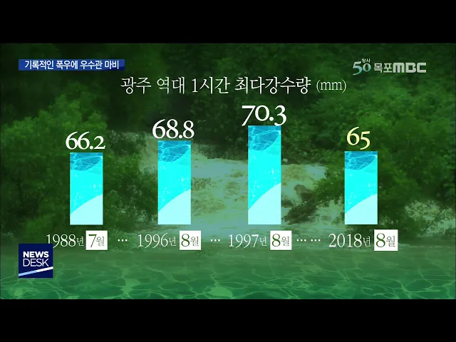 (앵커) 어제 광주도심 곳곳에 폭우가 쏟아졌지만 백운광장 일대는 특히 심했습니다. 배수관로 처리 용량을 넘어서는 집중 폭우 때문이었습니다. 송정근 기자입니다. (기자) 고가도로까지 잠겨버릴 정도의 집중호우. 광주 남구 백운동과 주월동 일대 주민들은 때아닌 폭우에 고생을 해야 했습니다. (인터뷰)이한성/침수피해 ...