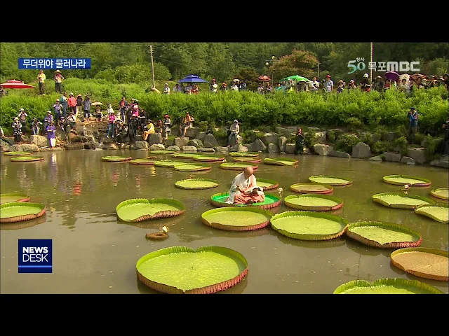 ◀ANC▶ 절기상 가을에 들어섰다는 입추가 지났어도 푹푹 찌는 더위는 지칠 줄 모르는데요. 그렇지만 더위를 날려버리는 행사들이 주말을 수놓고 있습니다. 문연철 기자가 취재했습니다. ◀END▶ ◀VCR▶ 지름이 족히 2미터는 돼 보이는 빅토리아 연꽃이 활짝 피었습니다. 마치 수중 부양을 한 듯 그 위에서 참선하는 스...