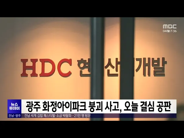 광주 화정아이파크 붕괴 사고의 책임자 재판이 막바지로 접어들었습니다.광주지방법원은업무상 과실치사 등의 혐의로 기소된 권순호 전 HDC현대산업개발 대표 등 화정아이파크 책임자 17명 등에 대해 내일(4) 결심 공판을 진행합니다.이들은 하부층 지지대를 설치하지 않은 채 공사를 지시하거나 방치해 지난 2022년 1월 신...