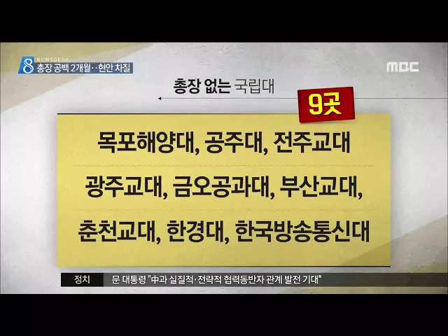 ◀ANC▶ 목포해양대 총장 공백 사태가 두달 넘게 이어지면서 미래 캠퍼스 조성계획안 확정 등 현안 사업들이 잇따라 차질을 빚고 있습니다. 새정부 출범 백일이 넘었지만, 해양대 등 총장이 없는 국립대는 9곳에 달합니다. 신광하 기자가 보도합니다. ◀VCR▶ 2학기 개강을 앞둔 목포해양대학교 캠퍼스. 지난 6월 이후 ...