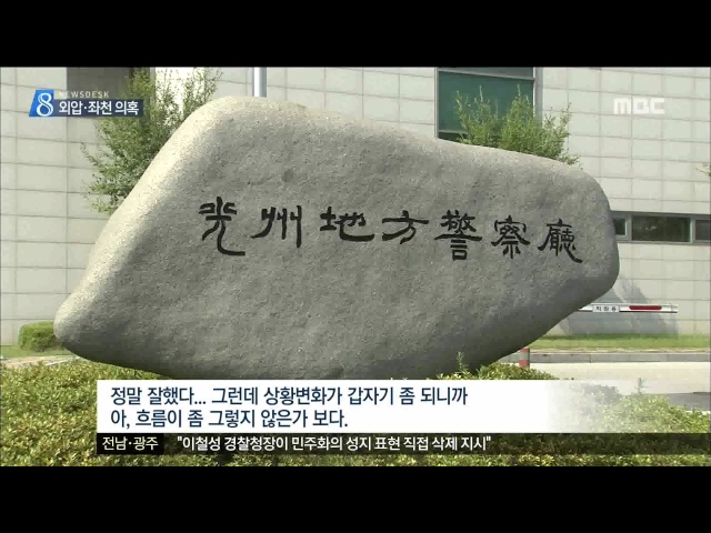 ◀ANC▶ 촛불집회 당시 광주를 '민주화의 성지'라고 표현해 화제가 됐던 광주경찰청 페이스북 글.. 단 하루만에 삭제됐는데 .. 이철성 경찰청장이 강하게 질책하며 삭제를 지시했다는 증언이 나왔습니다. 당시 광주경찰청장은 이 일 때문에 좌천됐다는 의혹까지 불거졌습니다. 김인정 기자입니다. ◀VCR▶ 지난해 촛불집...