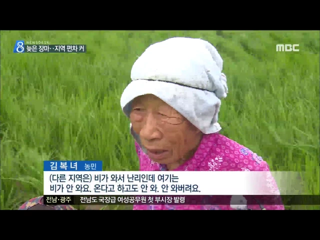 ◀ANC▶ 장마가 시작됐지만, 지역별로 강수량이 큰 차이를 보이면서 농민들의 걱정이 가시지 않고 있습니다. 북상하고 있는 태풍 난마돌은 내일(4) 일본으로 우회할 것으로 전망돼 광주*전남에는 큰 영향이 없을 것으로 보입니다. 김진선 기자가 보도합니다. ◀END▶ ◀VCR▶ 오랜 가뭄에 바닥을 드러낸 무안의 한 저수...