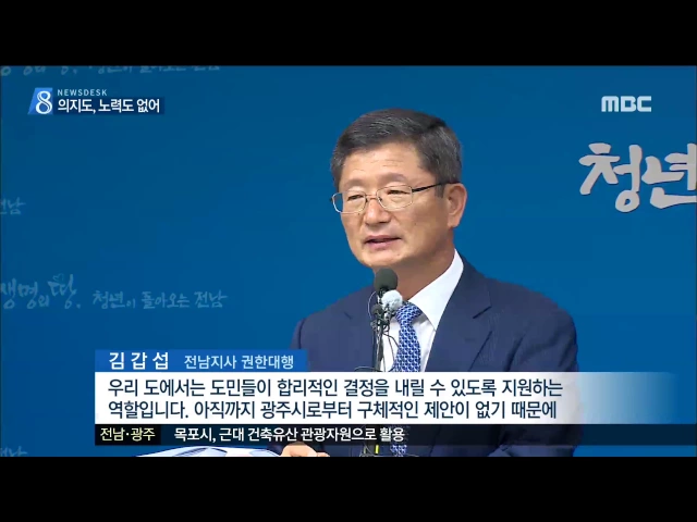 ◀ANC▶ 김갑섭 전남지사 권한대행이 무안국제공항 활성화에 얽힌 핵심 현안들에 대한 생각을 드러냈습니다. 지금껏 그래 왔던대로, 뾰족한 대응책 없이 원론적인 입장에 머물고 있습니다. 김윤 기자입니다. ◀END▶ ◀VCR▶ 광주시는 다음 달부터 군공항 이전 사업과 관련해 전남에서 주민 설명회를 계획 중입니다. 광...