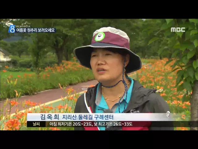 (앵커) 지리산 노고단에저 자생하는 원추리가 섬진강변 둘레길에서 군락을 이룬 채 꽃망울을 터뜨렸습니다. 4킬로미터에 이르는 꽃길이 조성되면서 여름철 나들이객들을 유혹하고 있습니다. 이계상 기자.. (기자) +++++++++ 장마철 먹구름이 서서히 걷히고 섬진강 둔치에 햇살이 내려앉습니다. 한여름을 상징하는 원추리꽃...